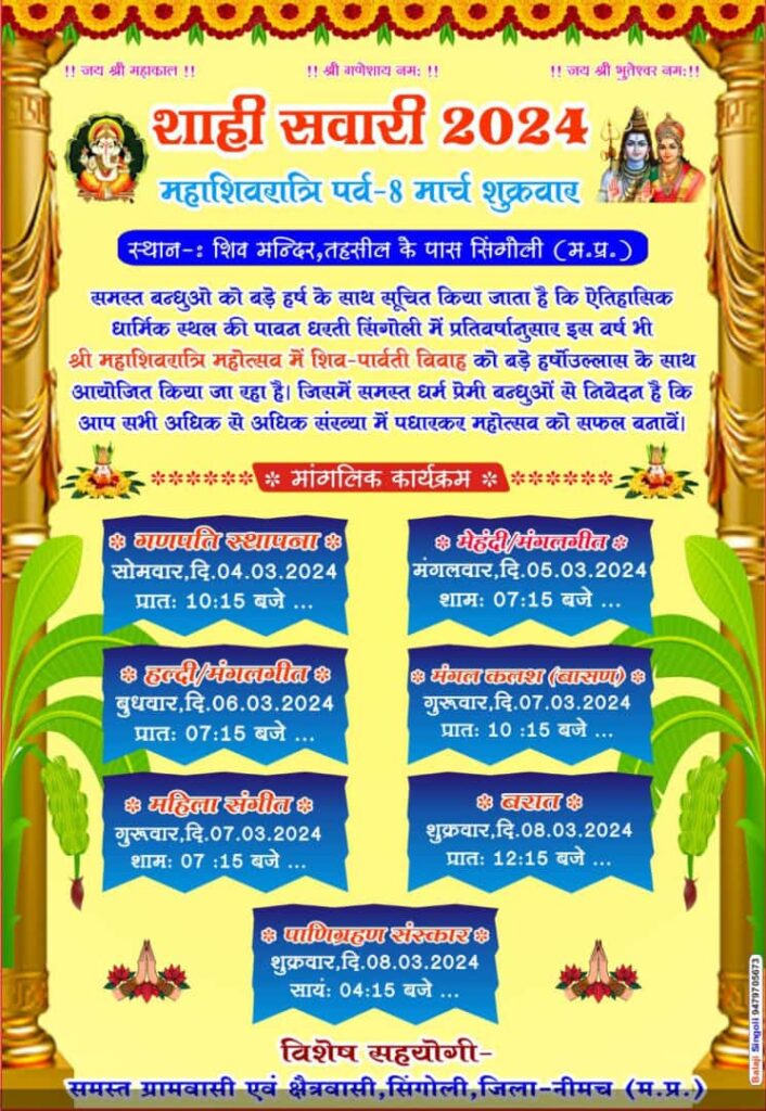 भगवान भोलेनाथ और मां पार्वती को भक्तो ने लगाई मेंहदी ,,,शिव विवाह पर 5 दिवसीय कार्यक्रम ,,नगर हुवा शिवमय Read More »