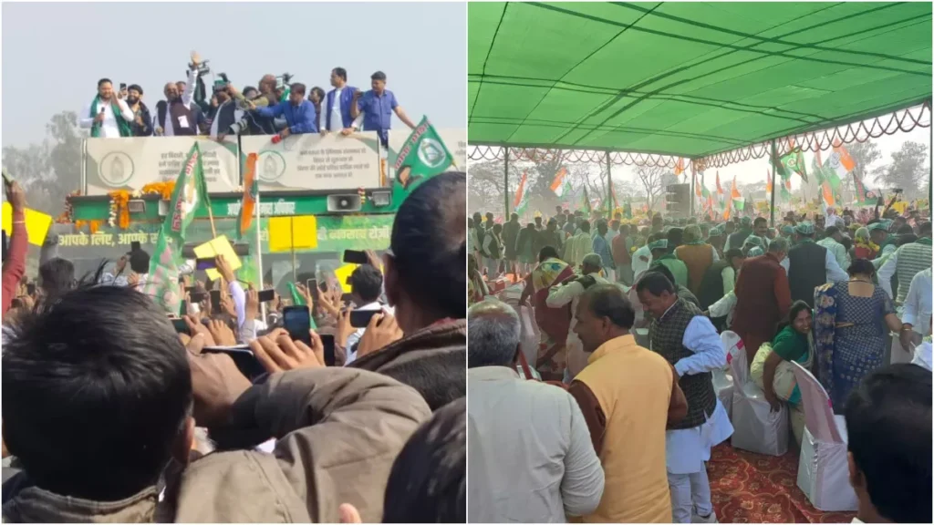 सीतामढ़ी में तेजस्वी के भाषण से पहले टूटा मंच, अब बस की छत से सभा को संबोधित कर रहे राजद नेता Read More »