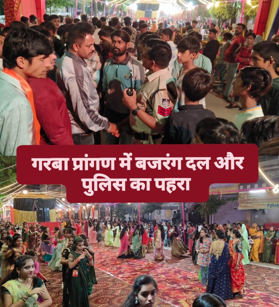 गरबा प्रांगण में बजरंग दल और पुलिस का पहरा : – गरबा प्रांगणों में महिला सुरक्षा को लेकर बजरंग दल और पुलिस का दिखा संयुक्त पहरा , दीनदयाल नगर में आयोजित गरबे में पहुंची बजरंग दल की टीम लोगो से नाम पता जान खड़े आसामाजिक तत्वों को देख किया बाहर , युवतियों ने किया महा गरबा रास Read More »