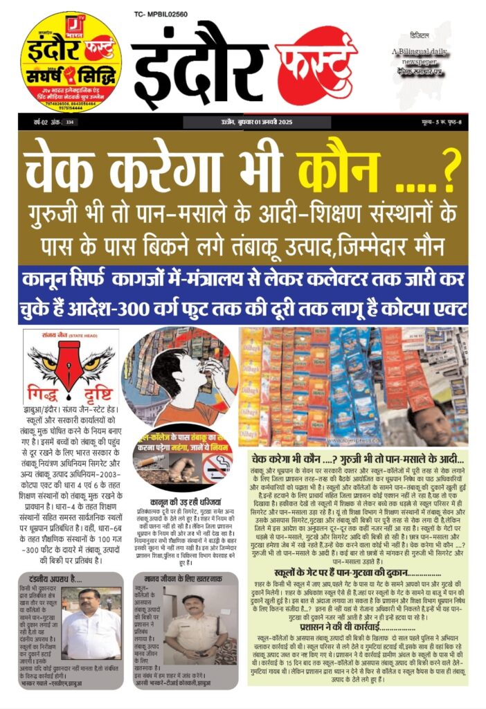 कोटपा अधिनियम के अन्तर्गत जिले में संयुक्त दल द्वारा 143 दुकानदारों के विरुद्ध जुर्माना अधिरोपित कर 6400 रुपए की राशि वसूली गई Read More »